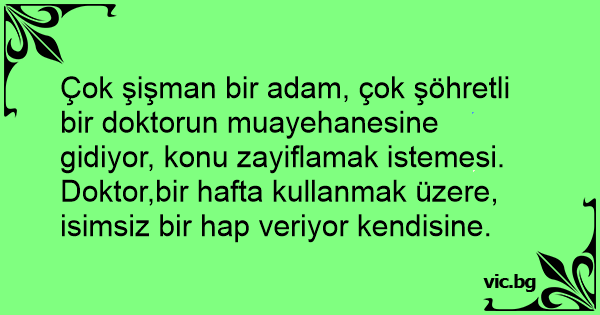 Çok şişman bir adam, çok şöhretli bir doktorun muayehanesine gidiyor, konu zayiflamak istemesi.