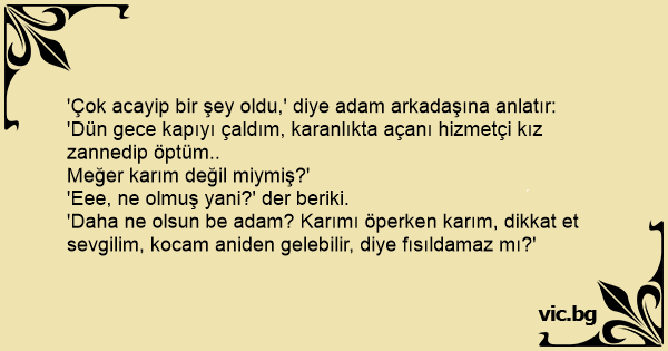 'Daha ne olsun be adam? Karımı öperken karım, dikkat et sevgilim, kocam aniden gelebilir, diye fısıldamaz mı?'
