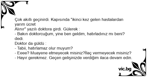 Çok akıllı geçinirdi. Kapısında "ikinci kez gelen hastalardan yarım ücret
