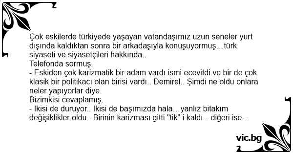 Çok eskilerde türkiyede yaşayan vatandaşımız uzun seneler yurt dışında kaldıktan sonra bir arkadaşıyla konuşuyormuş…türk siyaseti ve siyasetçileri hakkında..