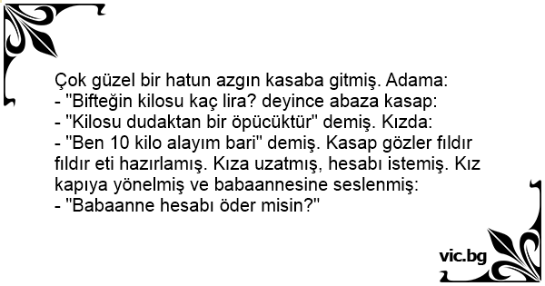 - "Bifteğin kilosu kaç lira? deyince abaza kasap: