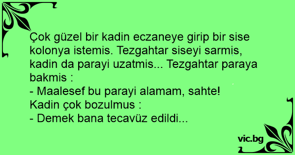 Çok güzel bir kadin eczaneye girip bir sise kolonya istemis. Tezgahtar siseyi sarmis, kadin da parayi uzatmis... Tezgahtar paraya bakmis :