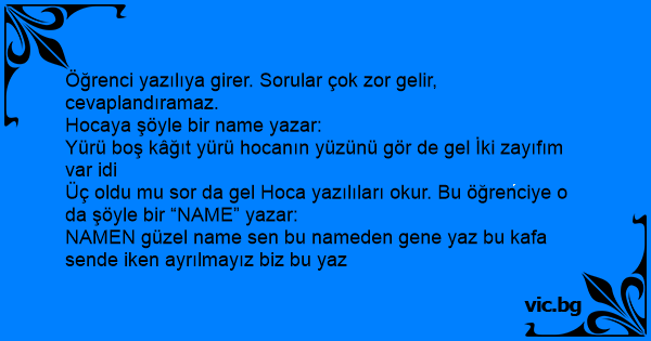 Üç oldu mu sor da gel Hoca yazılıları okur. Bu öğrenciye o da şöyle bir “NAME” yazar: