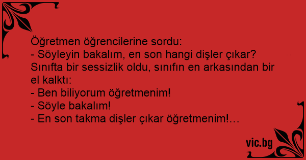 - En son takma dişler çıkar öğretmenim!…