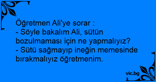 - Söyle bakalım Ali, sütün bozulmaması için ne yapmalıyız?