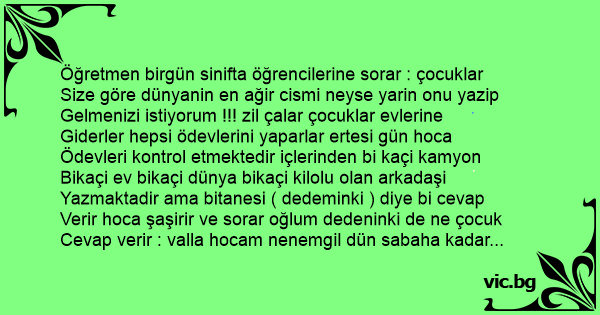 Öğretmen birgün sinifta öğrencilerine sorar : çocuklar