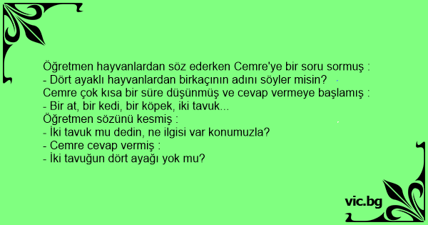 Öğretmen hayvanlardan söz ederken Cemre'ye bir soru sormuş :