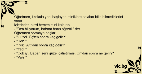 - "Çok iyi. Baban seni güzel çalıştırmış. On’dan sonra ne gelir?"