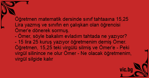 Öğretmen matematik dersinde sınıf tahtaaına 15,25 Lira yazmış ve sınıfın en çalışkan olan öğrencisi Ömer'e dönerek sormuş.