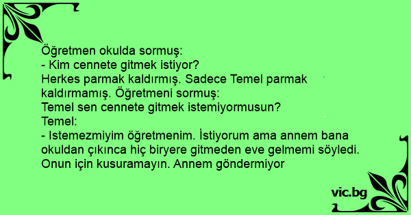 Herkes parmak kaldırmış. Sadece Temel parmak kaldırmamış. Öğretmeni sormuş: