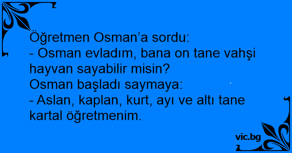 - Osman evladım, bana on tane vahşi hayvan sayabilir misin?
