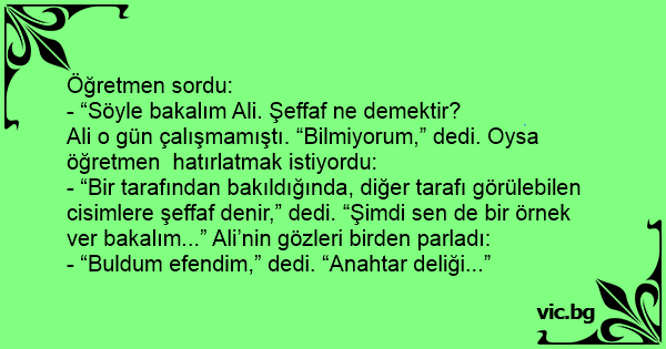 - “Söyle bakalım Ali. Şeffaf ne demektir?