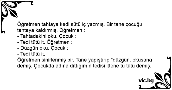 Öğretmen sinirlenmiş bir. Tane yapıştırıp "düzgün. okusana demiş. Çocukda adına dıttığımın tedisi ittene tu tütü demiş.