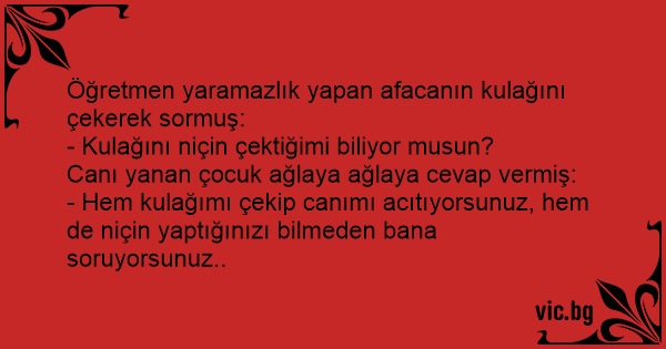 Öğretmen yaramazlık yapan afacanın kulağını çekerek sormuş: