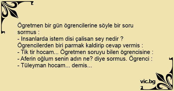 - Tik tir hocam... Ögretmen soruyu bilen ögrencisine :