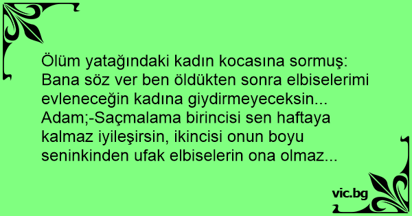 Ölüm yatağındaki kadın kocasına sormuş: Bana söz ver ben öldükten sonra elbiselerimi evleneceğin kadına giydirmeyeceksin...
