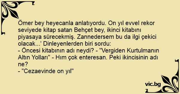 - Öncesi kitabının adı neydi? - "Vergiden Kurtulmanın Altın Yolları" - Hım çok enteresan. Peki ikincisinin adı ne?