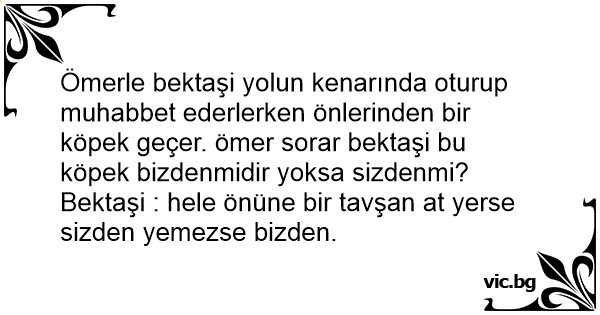 Ömerle bektaşi yolun kenarında oturup muhabbet ederlerken önlerinden bir köpek geçer. ömer sorar bektaşi bu köpek bizdenmidir yoksa sizdenmi?