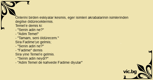 Önlerini birden eskiyalar kesmis, eger isimleri akrabalarinin isimlerinden degilse öldüreceklermis.