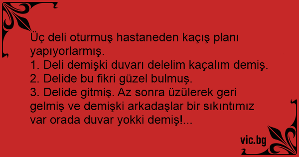 1. Deli demişki duvarı delelim kaçalım demiş.