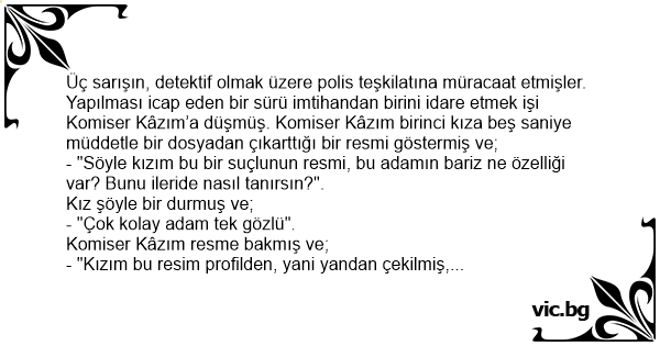 - "Söyle kızım bu bir suçlunun resmi, bu adamın bariz ne özelliği var? Bunu ileride nasıl tanırsın?".