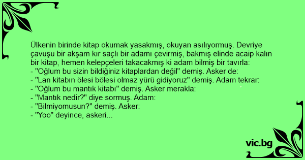 - "Oğlum bu mantık kitabı" demiş. Asker merakla: