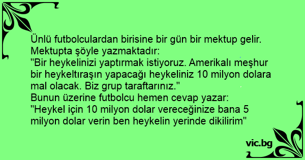 Ünlü futbolculardan birisine bir gün bir mektup gelir. Mektupta şöyle yazmaktadır: