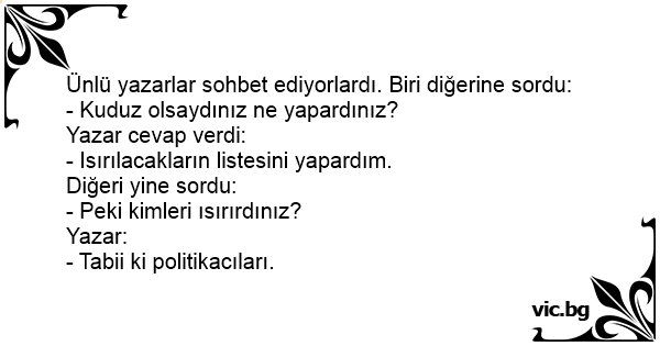 Ünlü yazarlar sohbet ediyorlardı. Biri diğerine sordu: