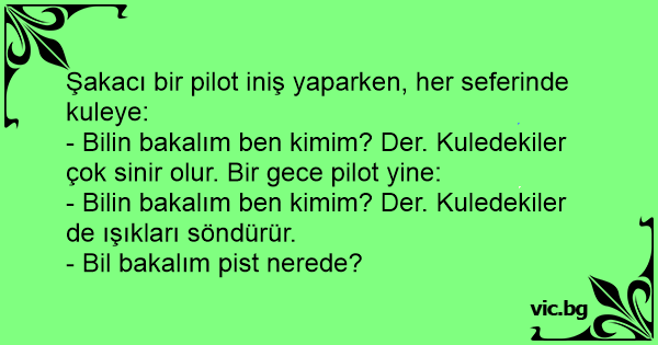 - Bilin bakalım ben kimim? Der. Kuledekiler çok sinir olur. Bir gece pilot yine: