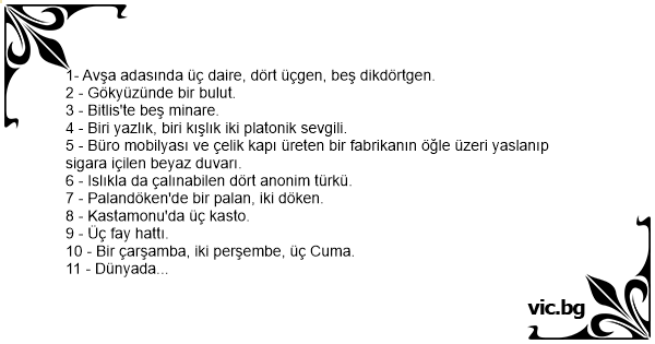 1- Avşa adasında üç daire, dört üçgen, beş dikdörtgen.