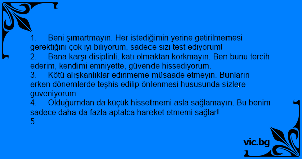 2. Bana karşı disiplinli, katı olmaktan korkmayın. Ben bunu tercih ederim, kendimi emniyette, güvende hissediyorum.