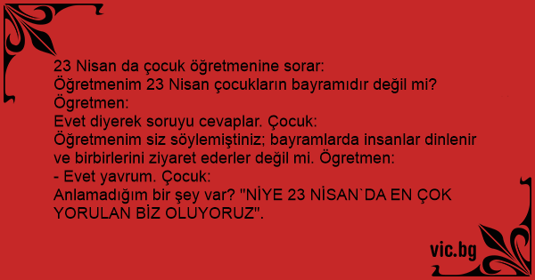 Öğretmenim 23 Nisan çocukların bayramıdır değil mi? Ögretmen: