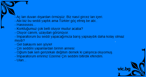 - Abi biz bu seddi yaptık ama Türkler göç etmiş be abi..