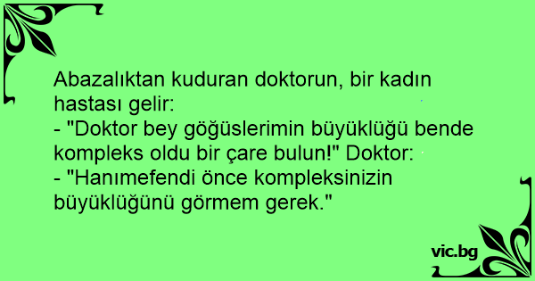 - "Doktor bey göğüslerimin büyüklüğü bende kompleks oldu bir çare bulun!" Doktor: