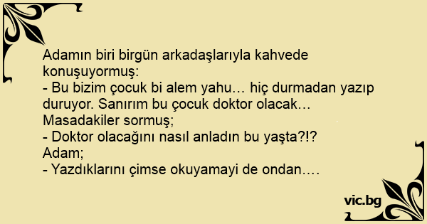 - Bu bizim çocuk bi alem yahu… hiç durmadan yazıp duruyor. Sanırım bu çocuk doktor olacak…