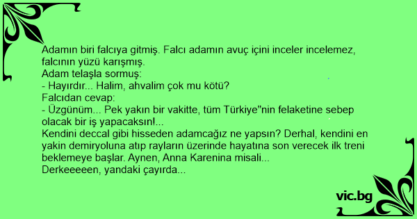 Adamın biri falcıya gitmiş. Falcı adamın avuç içini inceler incelemez, falcının yüzü karışmış.