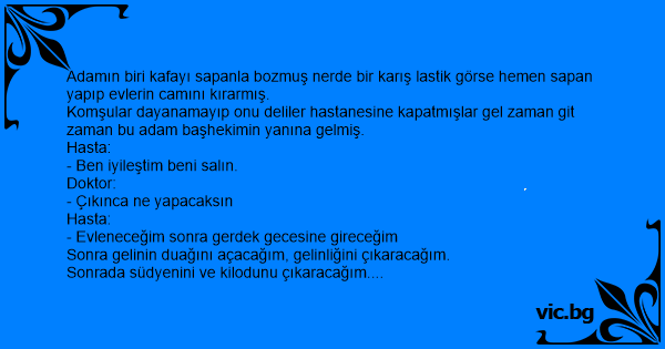 Komşular dayanamayıp onu deliler hastanesine kapatmışlar gel zaman giт zaman bu adam başhekimin yanına gelmiş.
