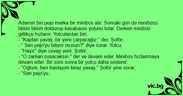 - "Sen pejo'yu biliyor musun?" Kadın "yok" der şoför yine aynı cevabı verir...
