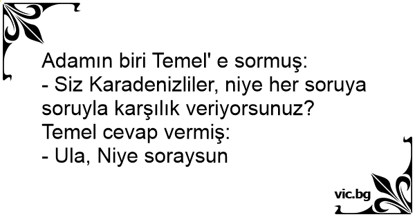 - Siz Karadenizliler, niye her soruya soruyla karşılık veriyorsunuz? Temel cevap vermiş: