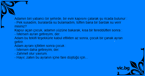 Adamın biri yabancı bir şehirde, bir evin kapısını çalarak şu ricada bulunur :