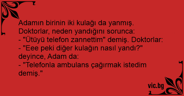 Adamın birinin iki kulağı da yanmış. Doktorlar, neden yandığını sorunca:
