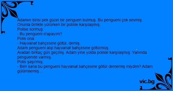 - Ben sana bu pengueni hayvanat bahçesine götür dememiş miydim? Adam gülümsemiş.