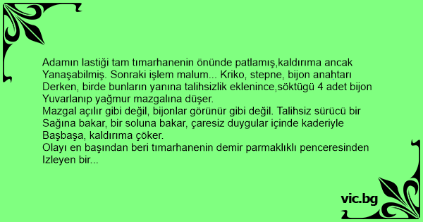 Adamın lastiği tam tımarhanenin önünde patlamış,kaldırıma ancak