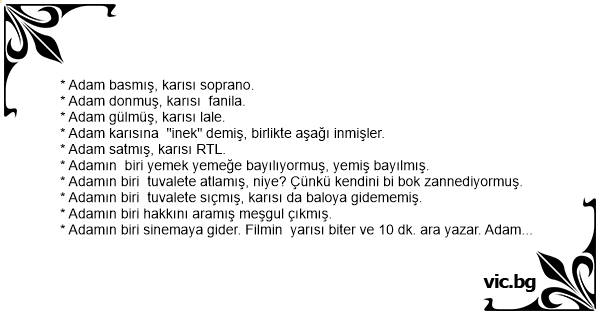 * Adamın biri tuvalete sıçmış, karısı da baloya gidememiş.