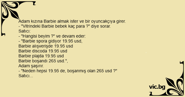 - "Vitrindeki Barbie bebek kaç para ?" diye sorar.