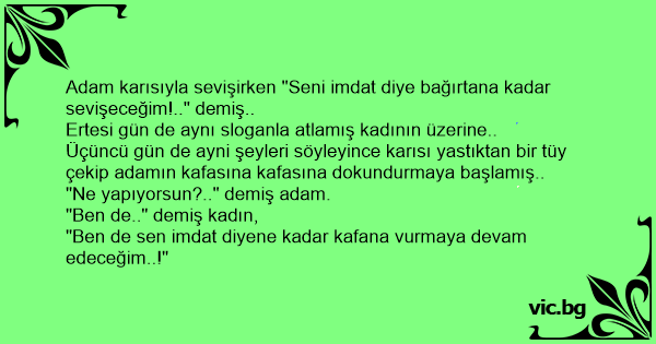 Adam karısıyla sevişirken "Seni imdat diye bağırtana kadar sevişeceğim!.." demiş..