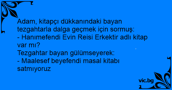 Adam, kitapçı dükkanındaki bayan tezgahtarla dalga geçmek için sormuş: