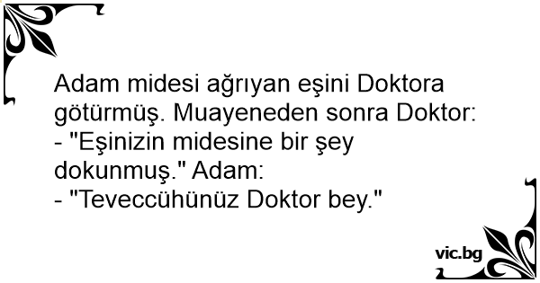 Adam midesi ağrıyan eşini Doktora götürmüş. Muayeneden sonra Doktor: