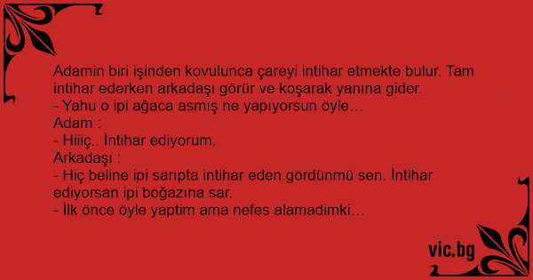 - Hiç beline ipi sarıpta intihar eden gördünmü sen. İntihar ediyorsan ipi boğazına sar.