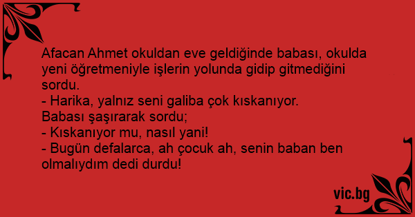 Afacan Ahmet okuldan eve geldiğinde babası, okulda yeni öğretmeniyle işlerin yolunda gidip gitmediğini sordu.
